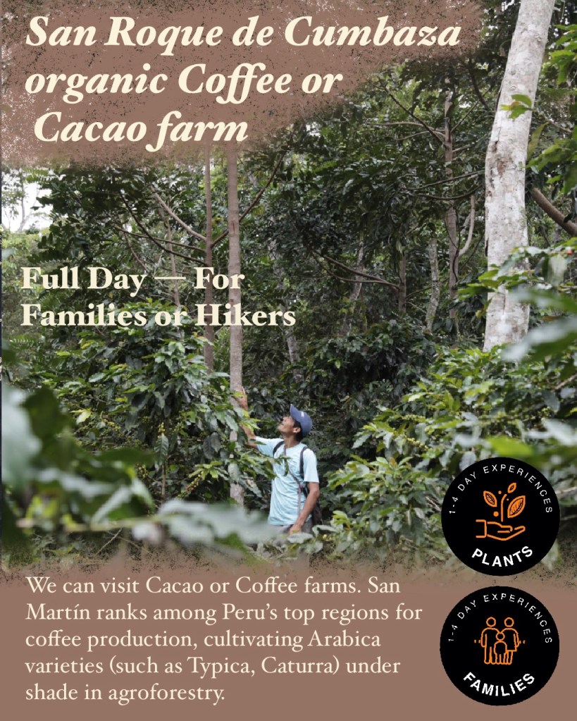 Begin your day with fresh local coffee in San Roque de Cumbaza. After a short drive, you’ll arrive at a hidden indigenous village. Meet the community, share stories, and hike to a secluded waterfall. Enjoy a home-cooked meal in the village, then walk a scenic path back to San Roque. This experience is sacred, and by invitation only—an intimate encounter with the land, its people, and something deeper.
